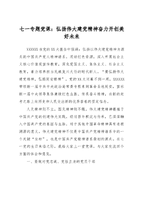 七一专题党课:弘扬伟大建党精神 奋力开创美好未来.docx