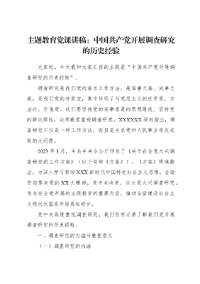 主题教育党课讲稿:中国共产党开展调查研究的历史经验.docx