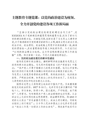主题教育专题党课:以党的政治建设为统领,全力开创党的建设各项工作新局面.docx