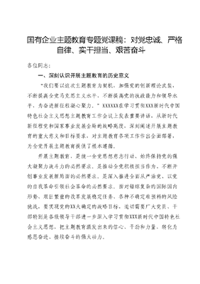 国有企业主题教育专题党课稿:对党忠诚、严格自律、实干担当、艰苦奋斗.docx