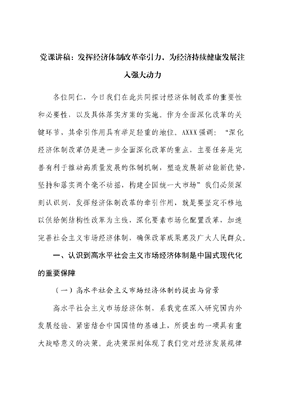 党课:发挥经济体制改革牵引力,为经济持续健康发展注入强大动力.docx