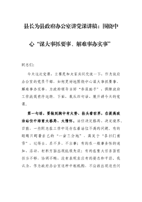 县长为县政府办公室讲党课讲稿:围绕中心“谋大事抓要事、解难事办实事”.docx