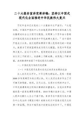 二十大报告宣讲党课讲稿:坚持以中国式现代化全面推进中华民族伟大复兴.docx