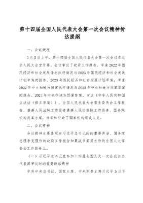 第十四届全国人民代表大会第一次会议精神传达提纲.docx