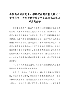 全国两会专题党课:牢牢把握高质量发展这个首要任务,为全面建设社会主义现代化国家开好局起好步.docx