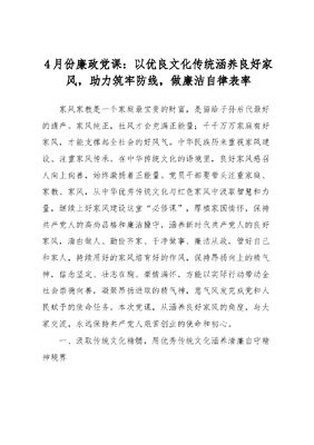 4月份廉政党课:以优良文化传统涵养良好家风,助力筑牢防线,做廉洁自律表率.docx