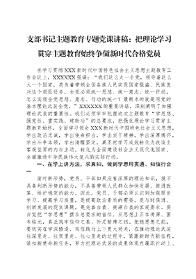 支部书记主题教育专题党课讲稿:把理论学习贯穿主题教育始终,争做新时代合格党员.docx
