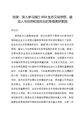党课:深入学习践行习近平生态文明思想,建设人与自然和谐共生的幸福美好家园.docx