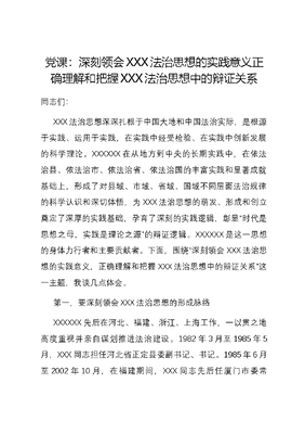 党课:深刻领会习近平法治思想的实践意义 正确理解和把握习近平法治思想中的辩证关系.docx