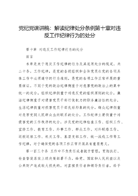党纪党课讲稿:解读纪律处分条例第十章对违反工作纪律行为的处分.docx