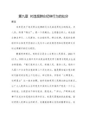 纪律处分条例解读党课讲稿:第九章对违反群众纪律行为的处分.docx