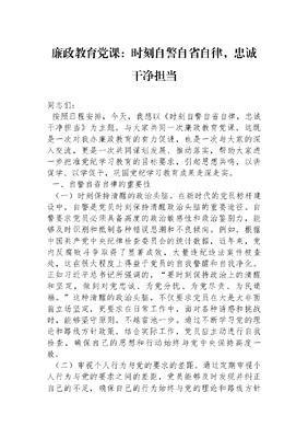 党纪学习教育廉政党课:时刻自警自省自律,忠诚干净担当.docx