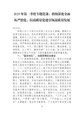 2025年第一季度专题党课:持续深化全面从严治党,以高质量党建引领高质量发展.docx