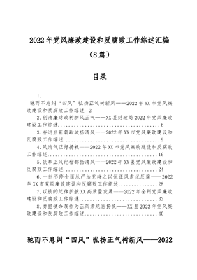 (8篇)2022年党风廉政建设和反腐败工作综述汇编.docx