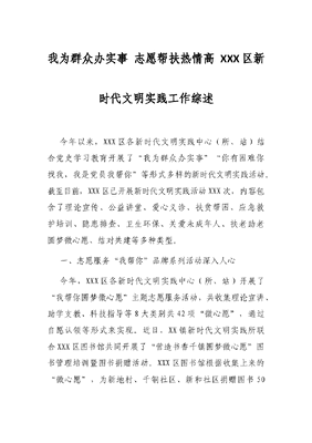 我为群众办实事志愿帮扶热情高XXX区新时代文明实践工作综述.docx