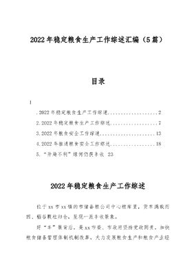 (5篇)2022年稳定粮食生产工作综述汇编.docx