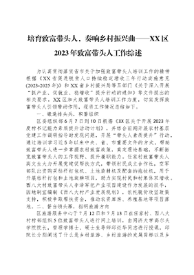 培育致富带头人,奏响乡村振兴曲——XX区2023年致富带头人工作综述.docx