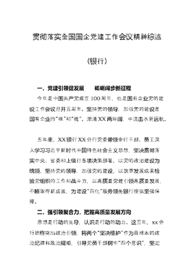 贯彻落实全国国企党建工作会议精神综述银行.docx