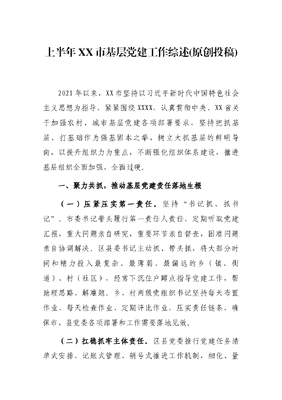 上半年XX市基层党建工作综述(原创投稿).docx