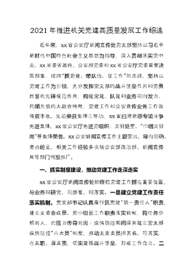 4篇2021年推进机关党建高质量发展工作综述汇编.docx