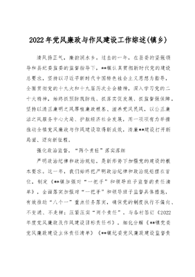 2022年党风廉政与作风建设工作综述(镇乡).docx
