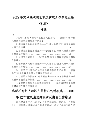 (8篇)2022年党风廉政建设和反腐败工作综述汇编.docx