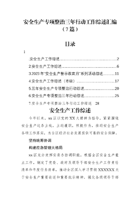 (7篇)安全生产专项整治三年行动工作综述汇编.docx