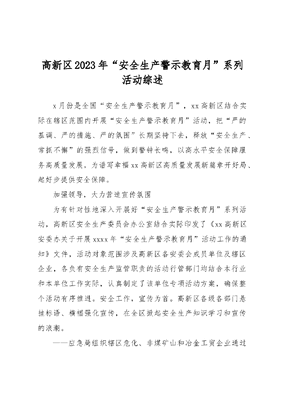 高新区2023年“安全生产警示教育月”系列活动综述.docx