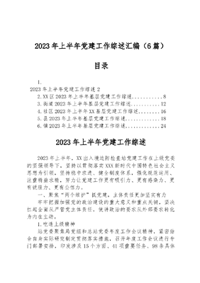 (6篇)2023年上半年党建工作综述汇编.docx