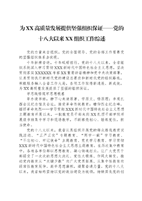 为XX高质量发展提供坚强组织保证——党的十八大以来XX组织工作综述.docx