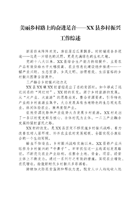 美丽乡村路上的奋进足音——XX县乡村振兴工作综述.docx