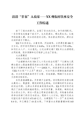 清清“甘泉”入农家——XX州农村饮水安全工作综述.docx