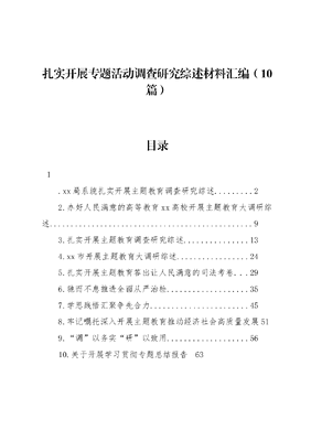 (10篇)扎实开展专题活动调查研究综述材料汇编.docx
