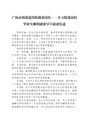 广拓市场渠道+深挖就业岗位——全力促进高校毕业生顺利就业尽早就业综述.docx