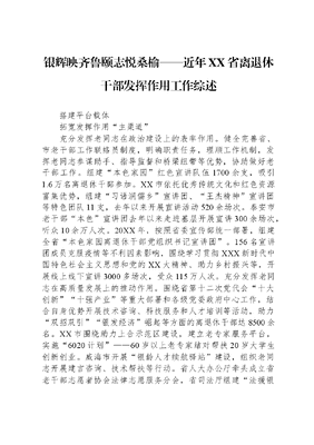 银辉映齐鲁+颐志悦桑榆——近年XX省离退休干部发挥作用工作综述.docx