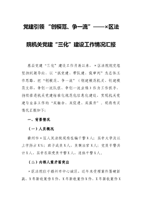 党建引领 “创模范、争一流”——×区法院机关党建“三化”建设工作情况汇报.docx