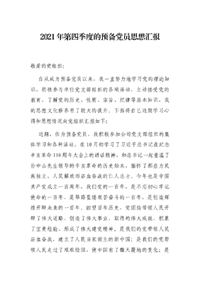 2021年第四季度预备党员(积极分子)思想汇报.docx