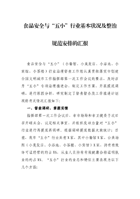 食品安全与“五小”行业基本状况及整治规范安排的汇报.docx