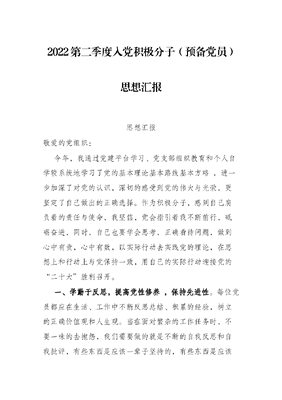 2022第二季度入党积极分子(预备党员)思想汇报.docx