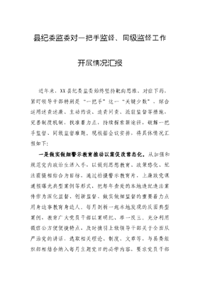 县纪委监委对一把手监督、同级监督工作开展情况汇报.docx