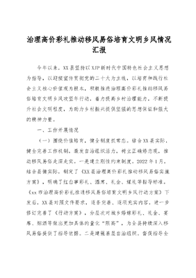 治理高价彩礼推动移风易俗培育文明乡风情况汇报.docx