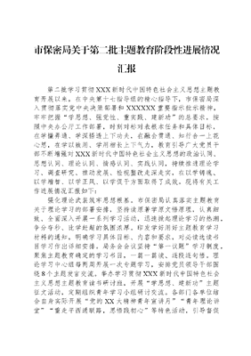 市保密局关于第二批主题教育阶段性进展情况汇报.docx