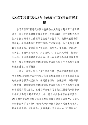 XX镇学习贯彻2023年主题教育工作开展情况汇报.docx