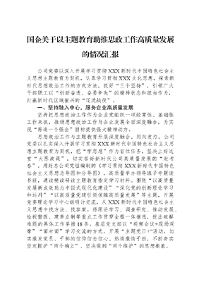 国企关于以主题教育助推思政工作高质量发展的情况汇报.docx