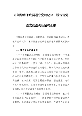 市领导班子成员遵守党的纪律、履行管党治党政治责任情况汇报.docx