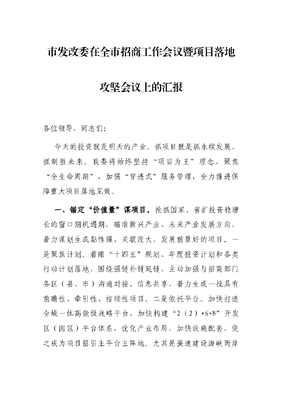 市发改委在全市招商工作会议暨项目落地攻坚会议上的汇报.docx