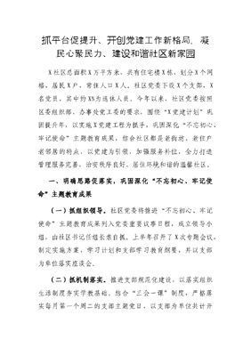 工作汇报:抓平台促提升、开创党建工作新格局,凝民心聚民力、建设和谐社区新家园.docx