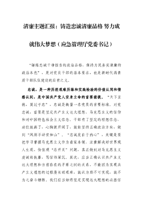 清廉主题汇报:铸造忠诚清廉品格 努力成就伟大梦想(应急管理厅党委书记).docx