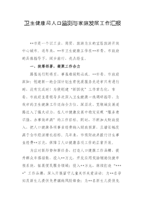 卫生健康局人口监测与家庭发展工作汇报.docx