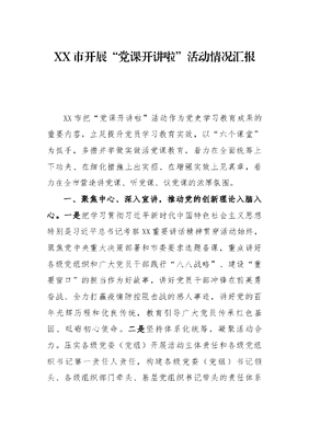 XX市开展“党课开讲啦”活动情况汇报.docx